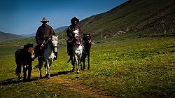 當(dāng)扎溪卡草原一望無(wú)際地層現(xiàn)在面前時(shí),相信你一定會(huì)被深深地打動(dòng)。它那氣勢(shì)磅礴不事雕琢的自然美,它的質(zhì)樸、純凈、蒼茫與曠漠,有一種大美不言的深沉。天空藍(lán)得透明,像一個(gè)巨大的藍(lán)色熒屏;云彩白得晶瑩,如絲如絮般輕輕飄過(guò)頭頂;清澈見(jiàn)底的雅礱江水蜿蜒流過(guò)開滿野花的草地,就連草原上的風(fēng)都帶著一股醉人的氣息。置身其間,讓人頓感神清氣爽、心曠神怡。 即使無(wú)數(shù)次地領(lǐng)略過(guò)高原上日出月落的景象,但這里的日出自有其不同凡響的輝煌。當(dāng)月亮漸漸淡出天幕的時(shí)候,大自然又開始了另一場(chǎng)更加精彩的演出:殷紅的太陽(yáng)如同宇宙娩出的嬰兒,在天地被撕裂的一剎那噴薄而出,迎來(lái)了它隆重的誕生!母親幸福的臉上頓時(shí)泛起了燦爛的紅霞,把湛藍(lán)的湖水染成了酒紅,使素潔的雪山披上了盛裝,大地萬(wàn)物都如受洗一般沐浴在金暉里,仿佛剛剛與太陽(yáng)一同新生……