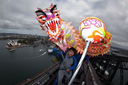當日,由當?shù)厝A人團體精心準備的中國傳統(tǒng)舞龍亮相悉尼海港大橋,拉開中國新年慶?;顒拥男蚰?。