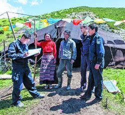 新龍縣拉日馬牧區(qū)派出所,地處海拔3768米的山塬草地,全所干警7人,負責管理方圓1527.19平方公里內(nèi)7個行政牧村、53個牧業(yè)小組、1269戶共計5600多人的治安秩序。這里遠離縣城,卻和周邊理塘、雅江、道孚三縣牧區(qū)相接,社會狀況復雜、自然環(huán)境惡劣,轄區(qū)內(nèi)大多數(shù)牧場靠騎馬、步行跋涉才能到達。多年來,全所干警以艱苦為榮,與牧民一家親,并用實實在在的工作業(yè)績,徹底改變了過去突出存在的打架斗毆、交通混亂和治安案件時發(fā)等問題。牧區(qū)的和諧穩(wěn)定,牧民的安居樂業(yè),贏得了牧民群眾的交口稱贊。(紫夫/文 扎西澤仁/圖)