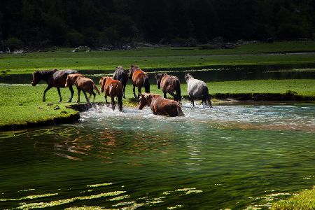 康定蓮花湖有純凈的陽(yáng)光、湛藍(lán)的天空、綠毯般的高山草甸、燦若繁星的野花、藍(lán)寶石般的高原湖泊、銀鏈般的溪流迂回盤旋、高大的康巴駿馬,還有在風(fēng)中獵獵飛舞的經(jīng)幡。