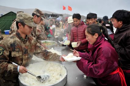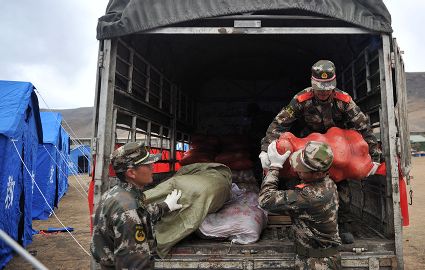 發(fā)放救災物資及災民生活掠影