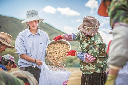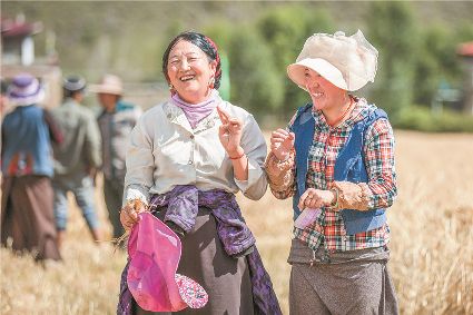 9月的康定,秋高氣爽。青稞、豌豆大豐收的喜悅,讓新都橋鎮(zhèn)俄一村的群眾笑逐顏開。筆者在收割現(xiàn)場情不自禁地按下快門,將他們的喜悅定格在了鏡頭里。(程莉 攝影報道)