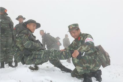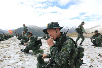 連日來,武警四川省總隊第二支隊緊貼反恐維穩(wěn)和搶險救災(zāi)任務(wù)實際,突出陌生地域、復(fù)雜條件和高寒氣候戰(zhàn)斗場景,將特戰(zhàn)隊員拉至海拔4000米以上的野外山地,狠練臨機拉動、高海拔處突、實兵對抗、極限體能、野外生存等課目訓(xùn)練,不斷挑戰(zhàn)特戰(zhàn)隊員戰(zhàn)術(shù)技能、生理極限,錘煉軍人血性和打贏能力。 (于傳濤 攝)