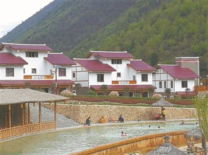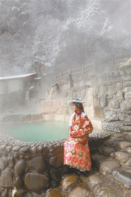 游客在海螺溝半畝山莊溫泉酒店泡溫泉。 海管局供圖