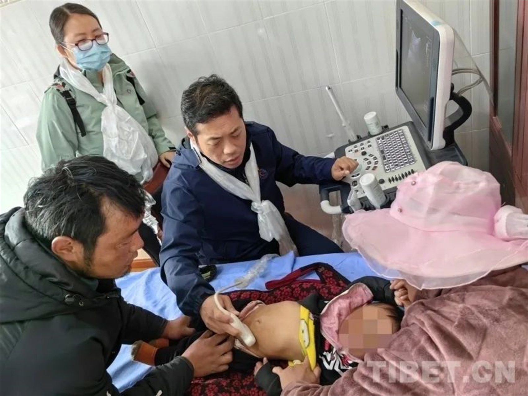圖為北京大學(xué)人民醫(yī)院急診科副主任遲騁為患兒做B超。 楊小軍 攝