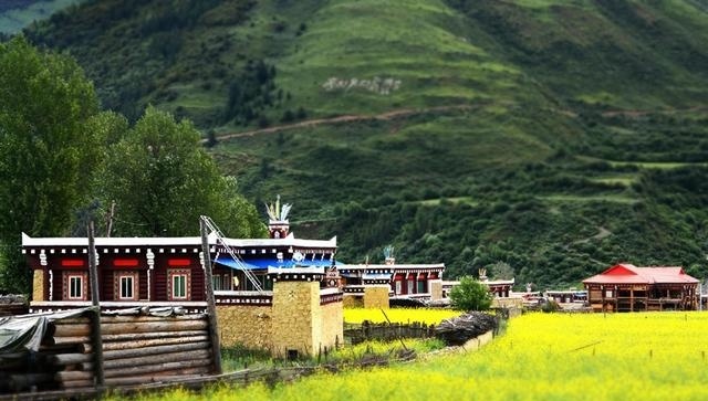 走進(jìn)這座別致的高原城市,首先呈現(xiàn)在你面前的就是那鱗次櫛比的藏式民居。這些民居外表主要由棕白兩色構(gòu)成,白色的屋頂,白色的主墻,木結(jié)構(gòu)處多用棕色顏料染涂,其間配以紅色、藍(lán)色圖案,在藍(lán)天、白云、青山、綠水的輝映下,仿佛幻化成妙不可言的積木圖案。這里的民居修得美輪美奐。如果不是親眼見(jiàn)到,還一定會(huì)認(rèn)為這令人眩目的房屋是夢(mèng)境。這就是道孚民居,被譽(yù)為散落人間的仙境皇宮。