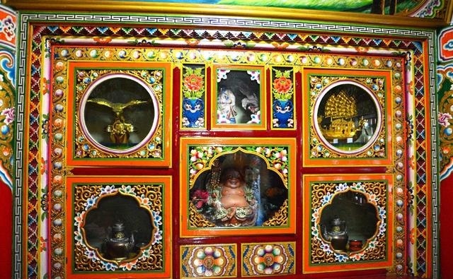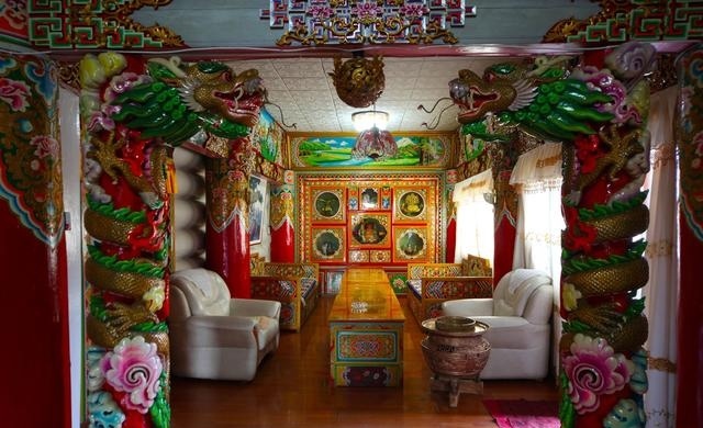 道孚民居室內(nèi)精雕細(xì)鏤,描金繪彩,每一個(gè)圖案或圖畫就是一個(gè)吉祥物或一個(gè)傳說(shuō)。民居客廳陳設(shè)豪華,富麗堂皇,極顯主人的富有;經(jīng)堂供奉佛像,酥油燈長(zhǎng)明,是家中的清靜之地;臥室多用箱式或椅式藏床,陳設(shè)溫馨而別具風(fēng)情。