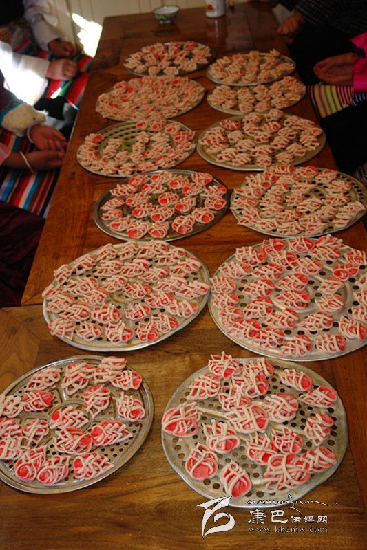 “花茹”是一種用面粉制作的糕點,是巴塘人逢年過節(jié)、婚禮慶典等節(jié)慶日不可或缺的美食佳肴,可以這樣說,在節(jié)日期間或宴請賓朋之日,在眾多的糖果糕點中,如缺少了“花茹”,便自然就失去了巴塘風(fēng)味。