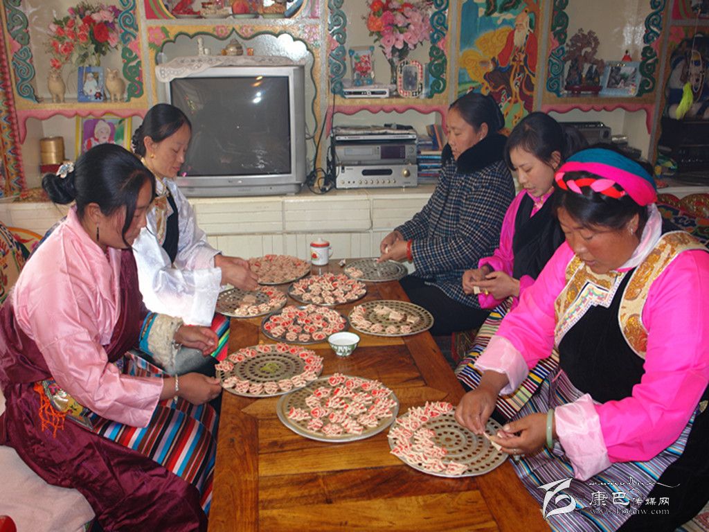 春節(jié)期間,巴塘人家都要將制作好的“花茹”作為上等貢品,擺放于神龕前,供奉神靈、祖先。小孩們更是對“花茹”情有獨鐘、愛不釋手,無論上街游玩、還是去觀看文藝演出,兜里都要揣上幾個“花茹”,既可當(dāng)糕點食用,還可充饑,一舉兩得。