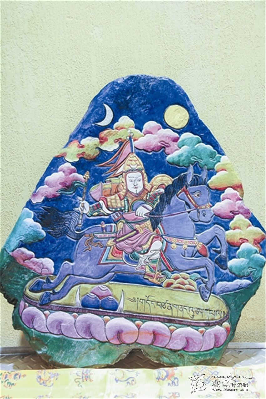 據(jù)了解,格薩爾彩繪石刻是藏族民間美術(shù)中的一門創(chuàng)新藝術(shù),它不僅是格薩爾文化的一種新的傳承方式,也填補(bǔ)了格薩爾文化在藏族石刻中的空白。格薩爾彩繪石刻刀法精細(xì),取材考究,在采用鑿刻、直刻、斜刻刀法的同時(shí),注重磨刻、磨劃技術(shù)效果,使石刻畫(huà)構(gòu)圖和諧。在石刻畫(huà)上采用了彩繪工藝,這樣既增加了畫(huà)面視覺(jué)的藝術(shù)感和光澤度,又可以起到保護(hù)作用。