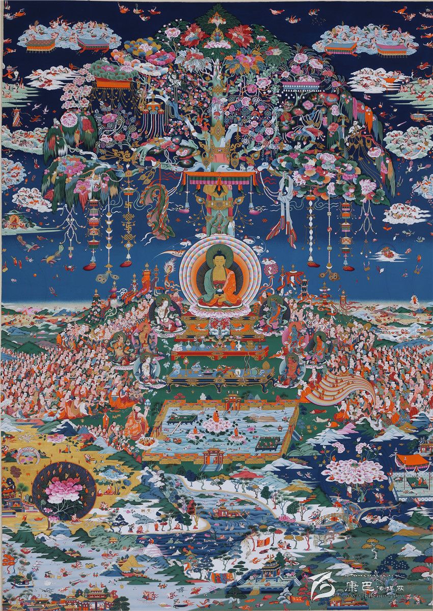 郎卡杰唐卡畫派傳統(tǒng)繪畫藝術(shù)風(fēng)格不僅主導(dǎo)著藏區(qū)東部的藏族美術(shù)文化,而且對整個(gè)藏族美術(shù)的傳承和發(fā)展也有較大影響,特別是對進(jìn)一步研究藏族歷史起著不可估量的巨大作用。