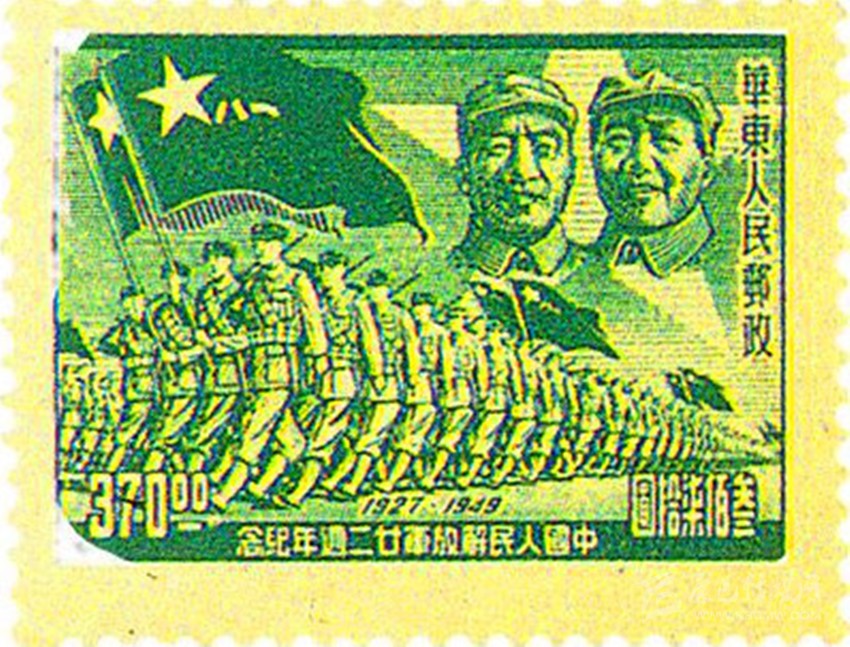 1949年8月華東郵政管理總局發(fā)行的《中國人民解放軍建軍22周年》紀(jì)念郵票。