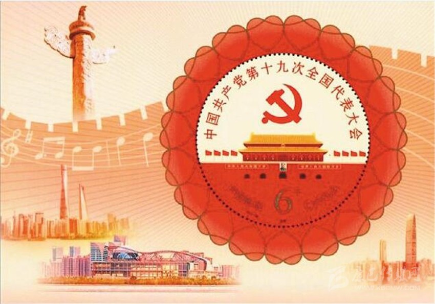 10月18日發(fā)行的《中國共產(chǎn)黨第十九次全國代表大會(huì)》紀(jì)念郵票小型張。