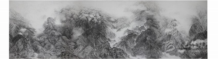 在我剛開(kāi)始創(chuàng)作茶馬古道之時(shí),有人問(wèn)我:給誰(shuí)畫(huà)的?拿來(lái)賣(mài)的嗎?我連連搖頭,問(wèn)者滿(mǎn)臉疑惑。也有同行對(duì)我創(chuàng)作大幅素描山水畫(huà)有些不解。其實(shí)我沒(méi)那么奇葩,只是每個(gè)人想要的不同而已。我花費(fèi)大量的財(cái)力和精力去采風(fēng)、寫(xiě)生并潛心創(chuàng)作《茶馬古道》,是因?yàn)槲议L(zhǎng)在茶馬古道,是茶馬古道養(yǎng)育了我,是我的責(zé)任感使然;為什么還要畫(huà)一幅難以參加常規(guī)展覽尺寸(966×266cm)的作品呢?是因?yàn)?/span>茶馬古道東線(xiàn)艱險(xiǎn)而又壯美的河山及所包涵的故事,用較小尺幅難以表達(dá)盡興。再則在藏族唐卡布上用鉛筆勾勒和皴擦出中國(guó)山水畫(huà)的意境,是一種新的嘗試,也是中西文化的再一次交匯。