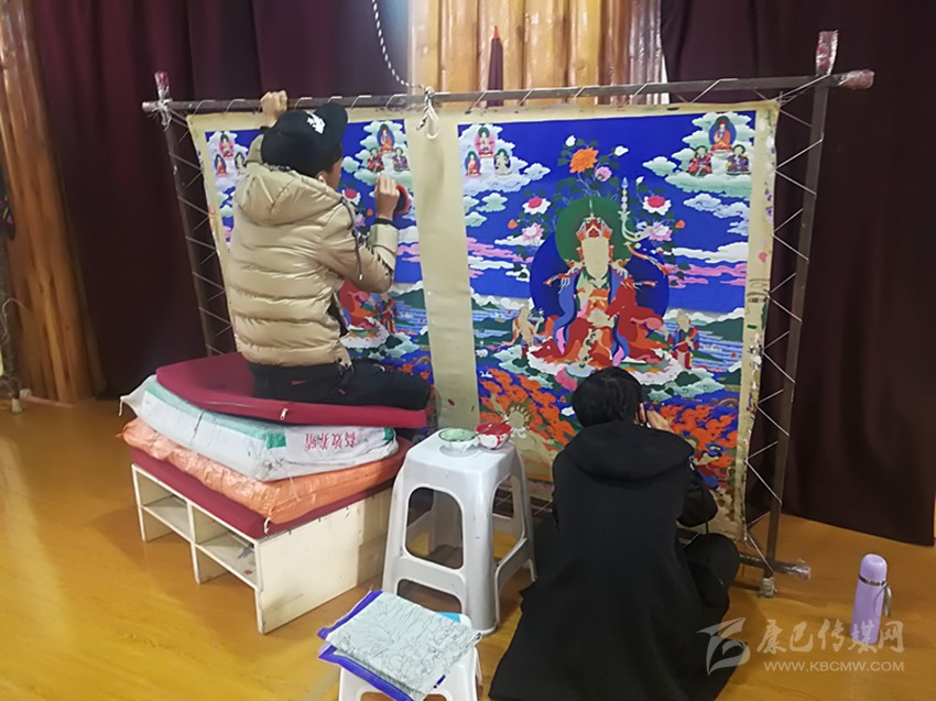 爐霍縣是茶馬古道重鎮(zhèn)、康北中心,也是著名的中國唐卡繪畫藝術(shù)之鄉(xiāng)。郎卡杰唐卡演展中心也是郎卡杰唐卡藝術(shù)有限公司所在地,根據(jù)介紹,該公司有畫師近200名,年產(chǎn)精品唐卡200余幅,意即每人每年只能繪制一幅作品。雍珠洛吾告訴記者,畫一幅唐卡需要投入巨大的勞力與心力,需要花費漫長的時間,短則半年,長則需要十余年。按照傳統(tǒng)說法,“一幅唐卡,要布谷鳥叫三次才能完成?!辈脊萨B叫三次就是三年。