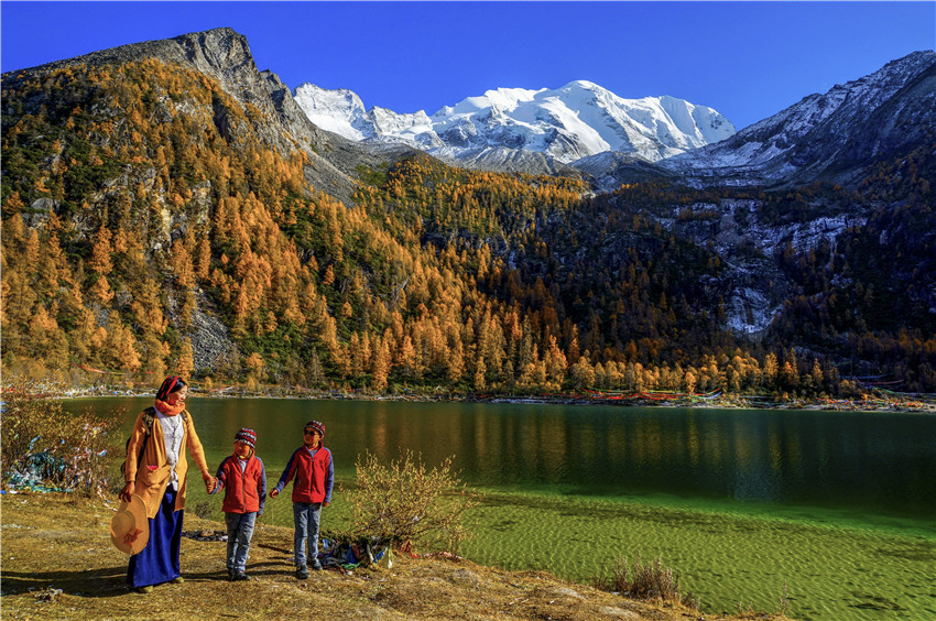 這里所說的跨越性是從時間和空間二維角度來講的。藏傳佛教中講輪回,在這種宗教觀念的影響下,宇宙之輪循環(huán)往復(fù),時間序列中過去、現(xiàn)在、未來永恒循環(huán),時間在空間中的綿延不會影響和區(qū)別生命的自在狀態(tài)。龍仁青小說在時間的跨越中體現(xiàn)藏文化的一脈傳承,《巴桑寺的C大調(diào)》里民國山灣巴桑寺的太陽“依舊蹲坐在西山頂上,有著持重老成的高僧大德一般的莊重和平靜”,《鳥巢》中當(dāng)下曲果小鎮(zhèn)的太陽“就像是一個深諳人生世事,有著豐富閱歷的老人,沉穩(wěn)而又粗然”。民國時期美國植物學(xué)家麥迪到巴桑寺拜謁神樹“拉香秀巴”,采集植物標(biāo)本;時光輪轉(zhuǎn)《綻放》里漢藏雙語寄宿小學(xué)的次洛在查美河岸草原尋找雪蓮和槐花,尋訪阿奶郎洛妮幽深的身世。上世紀(jì)70年代盛夏巴桑寺僧人久美身后姑娘的歌聲,幾十年后查美河岸次洛聽阿奶郎洛妮的吟唱。小說中時間跨度近一個世紀(jì),但藏族人對青藏高原富有山川地貌罕見的地理的情感與瑰麗的審美想象沒有變,對幽密深切滴愛情意蘊的表達(dá)和書寫沒有變。