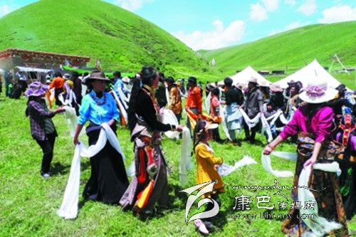 剛走進(jìn)宗塔壩子,記者便意識到一個人想象力的貧乏,現(xiàn)實(shí)中的宗塔草原以一種與眾不同的美把一個人的目光悄悄托起。四周長滿牧草的小山像溫順的花瓣,靜靜包裹著那一片平坦的壩子,如果一個人眺望的目光足夠高足夠遠(yuǎn),山和壩子的造型會讓人聯(lián)想到一朵蓮花,而壩子里小點(diǎn)般的帳篷就像一顆顆蓮子,世世代代的宗塔人便在這蓮花般盛開的天地里穿行、繁衍生息。
