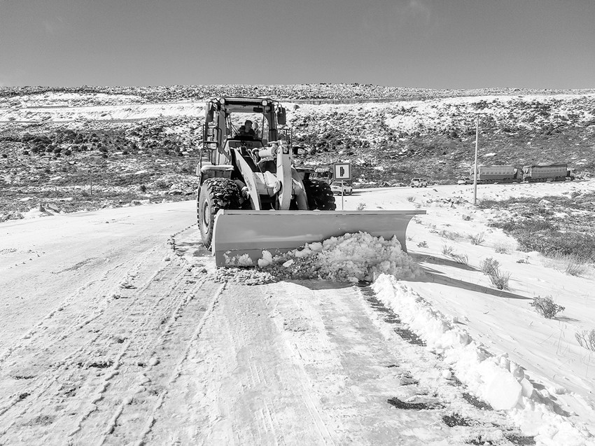 回程。盡管已經(jīng)想到過這一趟的不易,但在車子駛到山崖下時,我們還是著實被驚住了。我們的車子越過小溪進入山崖,便見前方不遠的懸崖上不斷有石塊在掉落,砸在路面、車頂和擋風(fēng)玻璃上,嘚嘚、咚咚、當(dāng)當(dāng)?shù)仨憘€不停??绰访妫幸欢驯荒氤梢蛔∩椒逅频乃槭?,想來就是由若干次這樣的飛石堆積而成的;看高處,一塊張牙舞爪的巨大巖石,正無聲地冒著濃濃的煙塵,那些落石就是從那里掉落下來的。這時候起了風(fēng),扭動的煙塵里,那塊巨大的巖石似乎也隨時可能落下來。我遲疑了一下,下定決心踩下了油門,我們的車子于是轟隆著,脫韁的野馬似的向前沖了出去,一直沖過整個山崖,在胸腔里轟咚咚的狂跳中在山崖下的那個拐彎停住。