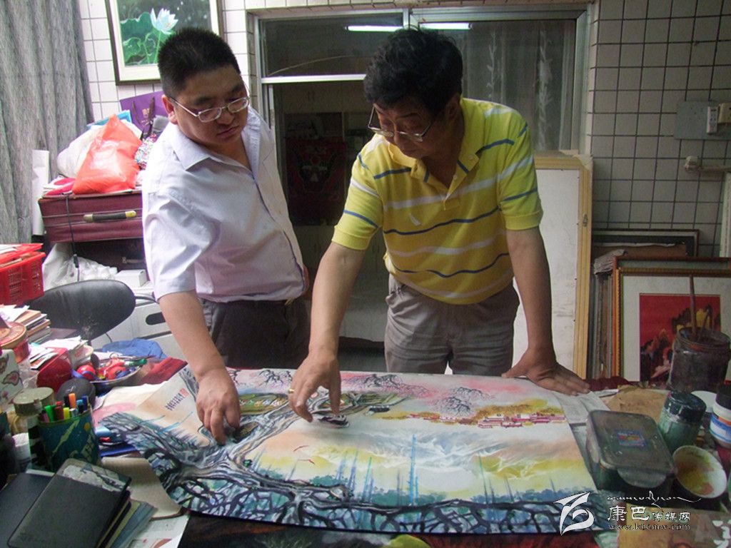得知記者在《成都日報》學習,文光裕先生便盛情相邀記者去他家里做客。7月9日,記者到雙流采訪了文光裕先生。文光裕先生詼諧幽默,學說逗唱、琴棋書畫樣樣都懂。他具有平和的心態(tài),所以看起來特別年輕,記者見到他的時候,很難把古稀老人與他聯(lián)系起來。人未見,笑聲先到,文光裕先生爽朗的笑聲感染了記者。他正在創(chuàng)作新舊康定對比繪畫作品。雄奇險峻的郭達山下,湍急的河水,密密麻麻的民房,這就是他記憶中上個世紀50年代的康定,雖然長期居住在內(nèi)地,但文光裕先生思鄉(xiāng)心切,用繪畫的形式來寄托對家鄉(xiāng)的思念。