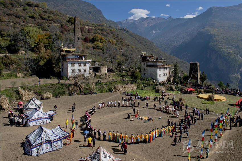 男女跳起吉祥的鍋莊,為嘉絨兒女祝福。