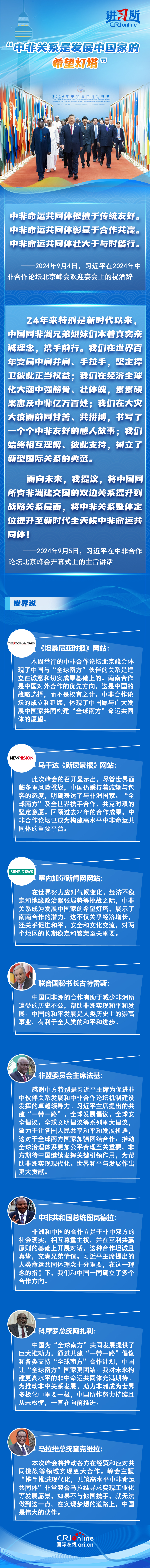 從宣布建立“新型伙伴關(guān)系”,到整體定位提升至“新時(shí)代全天候中非命運(yùn)共同體”,成立24年的中非合作論壇不斷推動(dòng)中非關(guān)系實(shí)現(xiàn)跨越式發(fā)展,特別是新時(shí)代以來,中國(guó)本著真實(shí)親誠(chéng)理念,同非洲兄弟姐妹們攜手前行,受到非方廣泛稱贊。非方各界認(rèn)為,為推動(dòng)非中關(guān)系發(fā)展、助力非洲成為世界多極化中重要一極,中國(guó)所作努力持續(xù)且從未松懈,中非關(guān)系是發(fā)展中國(guó)家的希望燈塔。