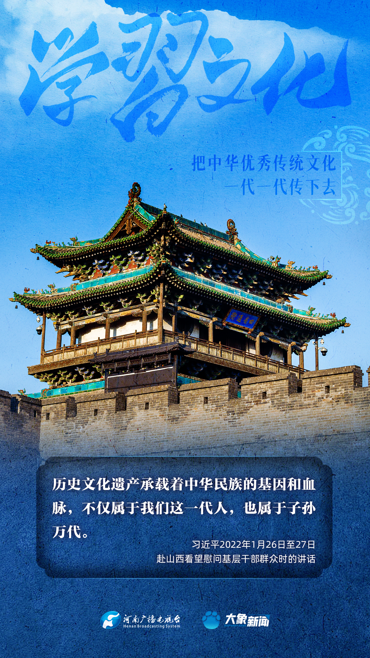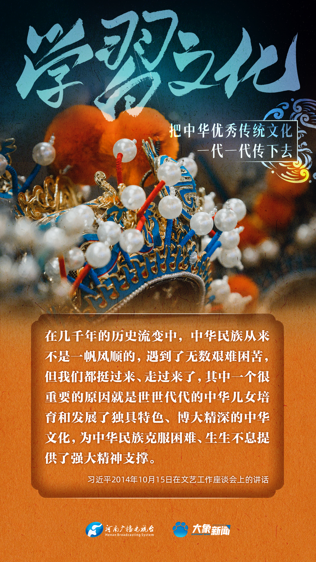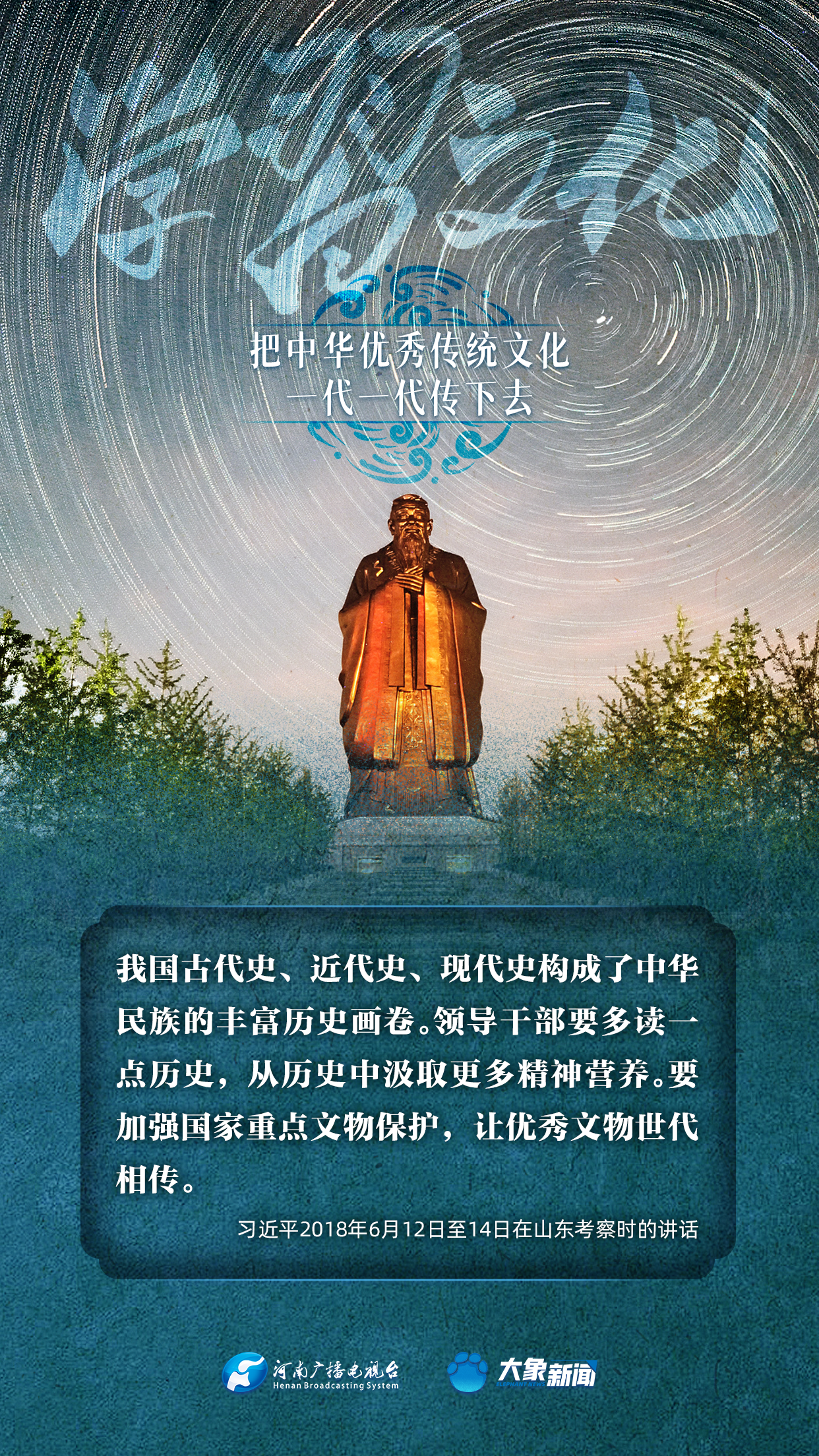 習(xí)近平總書記高度重視中華優(yōu)秀傳統(tǒng)文化的傳承發(fā)展,發(fā)表了一系列重要講話,大象新聞邀您一起學(xué)思踐悟,身體力行。