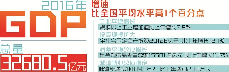 本網(wǎng)訊(記者 陳巖 梁現(xiàn)瑞 李龍俊)1月22日,省政府新聞辦召開新聞發(fā)布會(huì),發(fā)布2016年經(jīng)濟(jì)數(shù)據(jù)。經(jīng)國家統(tǒng)計(jì)局審定,2016年全省實(shí)現(xiàn)地區(qū)生產(chǎn)總值(GDP)32680.5億元,按可比價(jià)格計(jì)算比上年增長7.7%,增速比全國平均水平高1個(gè)百分點(diǎn)。全省經(jīng)濟(jì)運(yùn)行呈現(xiàn)總體穩(wěn)定、穩(wěn)中有進(jìn)、穩(wěn)中有好的發(fā)展態(tài)勢(shì),實(shí)現(xiàn)“十三五”良好開局。