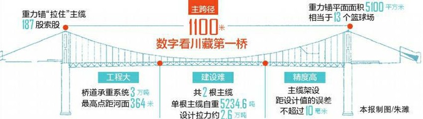 興康特大橋橫跨大渡河,為懸索橋設計,在整個道橋系統(tǒng)中,全靠主纜拉住橋面、形成支撐。道橋設計承重系統(tǒng)有3萬多噸,如何拉得住?