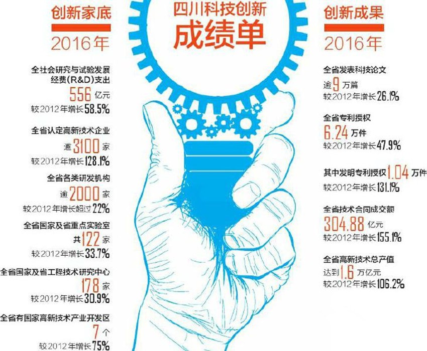 從獲獎數量看,國家科學技術進步獎達136項,占四川所獲獎項數八成以上。此類獎項主要針對在應用中取得重大經濟效益或社會效益的科技成果?!芭c經濟發(fā)展結合緊密,是四川所獲獎項的一大特點?!笔】萍紡d相關負責人介紹,以獲國家科學技術進步獎二等獎的“古老碳酸鹽巖勘探理論技術創(chuàng)新與安岳特大型氣田重大發(fā)現”為例,其成功攻破海相碳酸鹽巖中天然氣發(fā)現、開采難題,可帶動地區(qū)GDP增加逾1300億元。