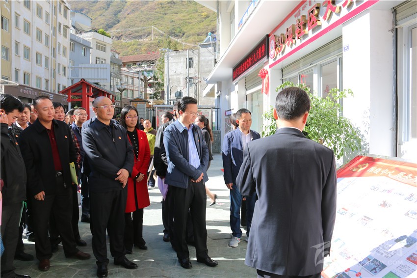會前,劉吉祥出席了瀘定縣沙壩社區(qū)委員會揭牌儀式,并同與會同志參觀了瀘定縣沙壩社區(qū)“大黨委”建設(shè)、電力公司國企黨組織建設(shè)、瀘橋鎮(zhèn)便民服務(wù)中心建設(shè)、縣法院機關(guān)黨組織建設(shè)。