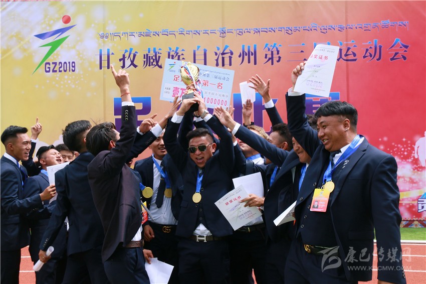 隨著主裁判一聲哨響,甘孜格薩之翼足球隊(duì)和道孚聯(lián)隊(duì)的比分定格在2比0。扎著一頭小辮的頓珠益加將足球高高地踢向天空,他和他的甘孜隊(duì),得到了甘孜州足球史上迄今為止分量最重的獎(jiǎng)項(xiàng)——第三屆州運(yùn)會(huì)男子足球賽冠軍。