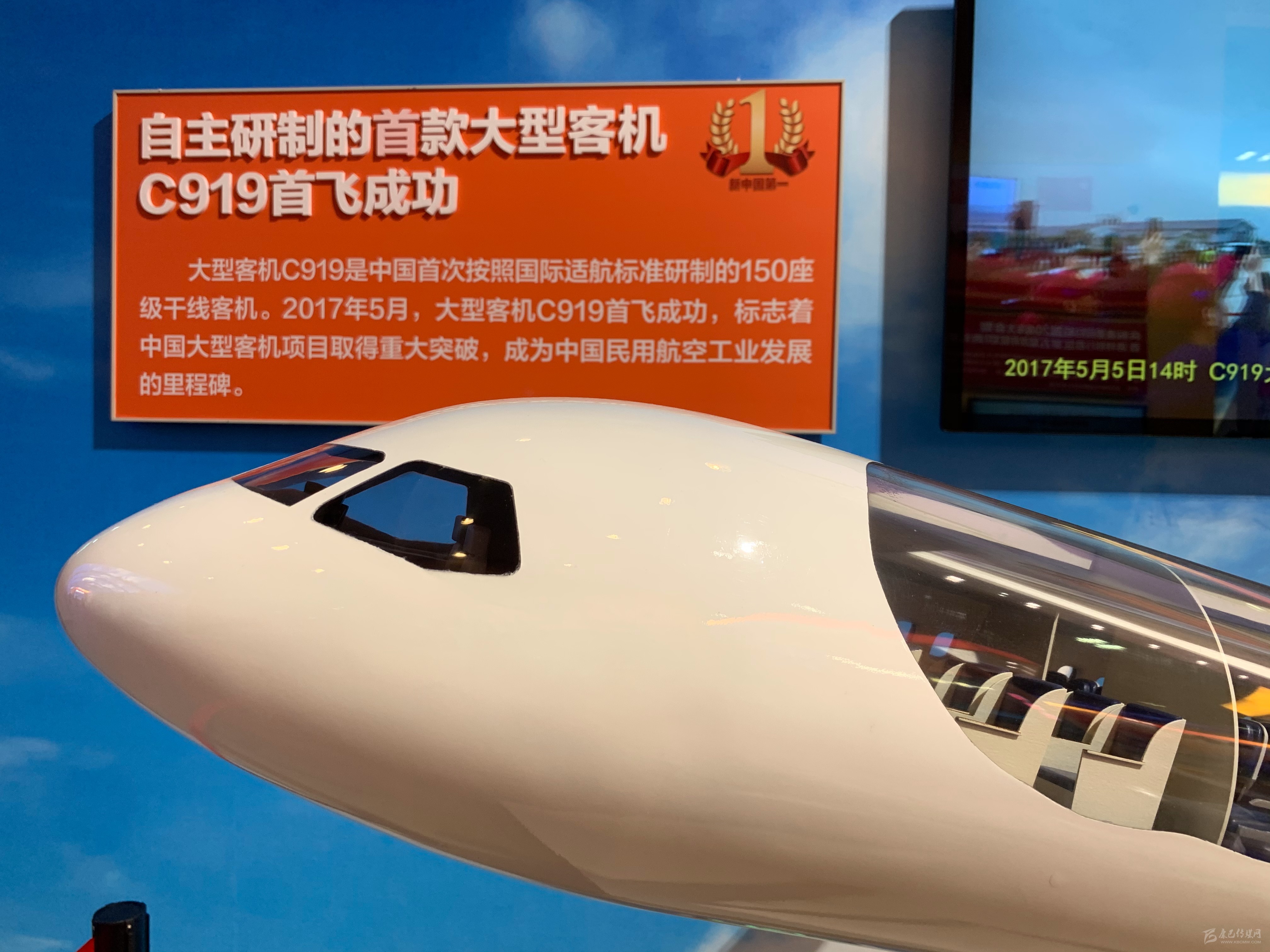 在2017年展區(qū),C919大飛機模型,配合解說圖片以及總裝下線當(dāng)日的視頻展出。