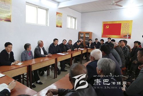3月17日,習(xí)近平在東壩頭鄉(xiāng)張莊村村委會(huì)與干部群眾座談,聽(tīng)取意見(jiàn)和建議。