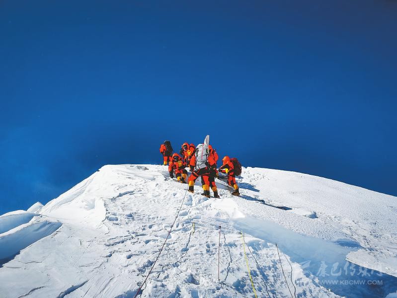 據(jù)新華社珠峰大本營(yíng)5月27日電 27日11時(shí)整,中國(guó)2020珠峰高程測(cè)量登山隊(duì)8名隊(duì)員登頂“地球之巔”珠穆朗瑪峰,為珠峰“量身高”。