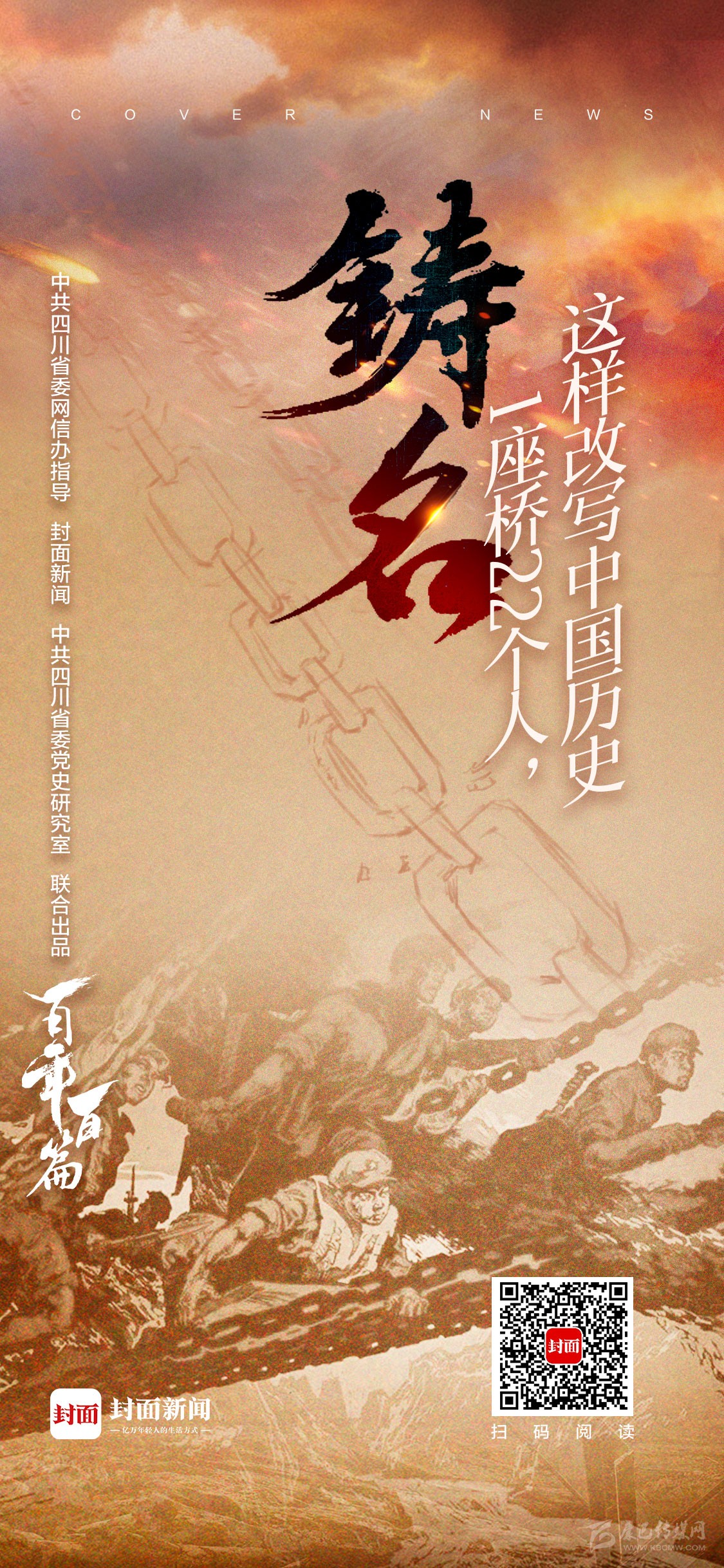 “金沙水拍云崖暖,大渡橋橫鐵索寒?!?5年前,在前有大渡河天險、后有國民黨追兵的危急時刻,22位勇士臨危受命組成突擊隊,冒著迎面射來的彈雨,以強(qiáng)攻手段飛奪瀘定橋,打通了紅軍北上的道路。