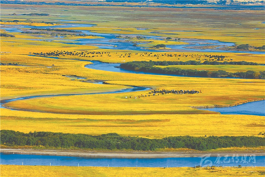 理塘毛埡草原牦牛成群。