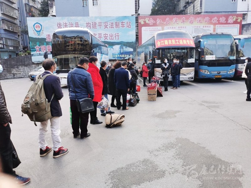 四川新聞網(wǎng)成都2月21日訊(記者 李丹)2月19日早上8時,在四川省瀘州市合江縣客運中心,全縣首趟農(nóng)民工返崗務工專車正要出發(fā)。90名合江籍農(nóng)民工在接受體溫檢測和手續(xù)檢查后,登上合江首列赴粵返崗專車,“點對點、一站式”到達深圳龍崗,奔赴各自的崗位復工。