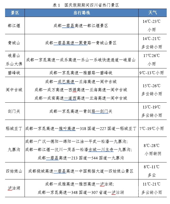 國慶大假即將來臨,去哪里?堵不堵?是公眾關(guān)心的熱點。9月28日,四川省交通運輸綜合行政執(zhí)法總隊(廳高管局)、四川省公安廳交通警察總隊聯(lián)合發(fā)布假期高速公路研判,提醒廣大車主朋友們出行前合理安排出行時間和出行路線,盡量避開高峰時段和擁堵路段。