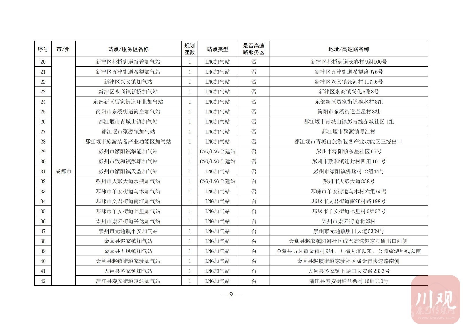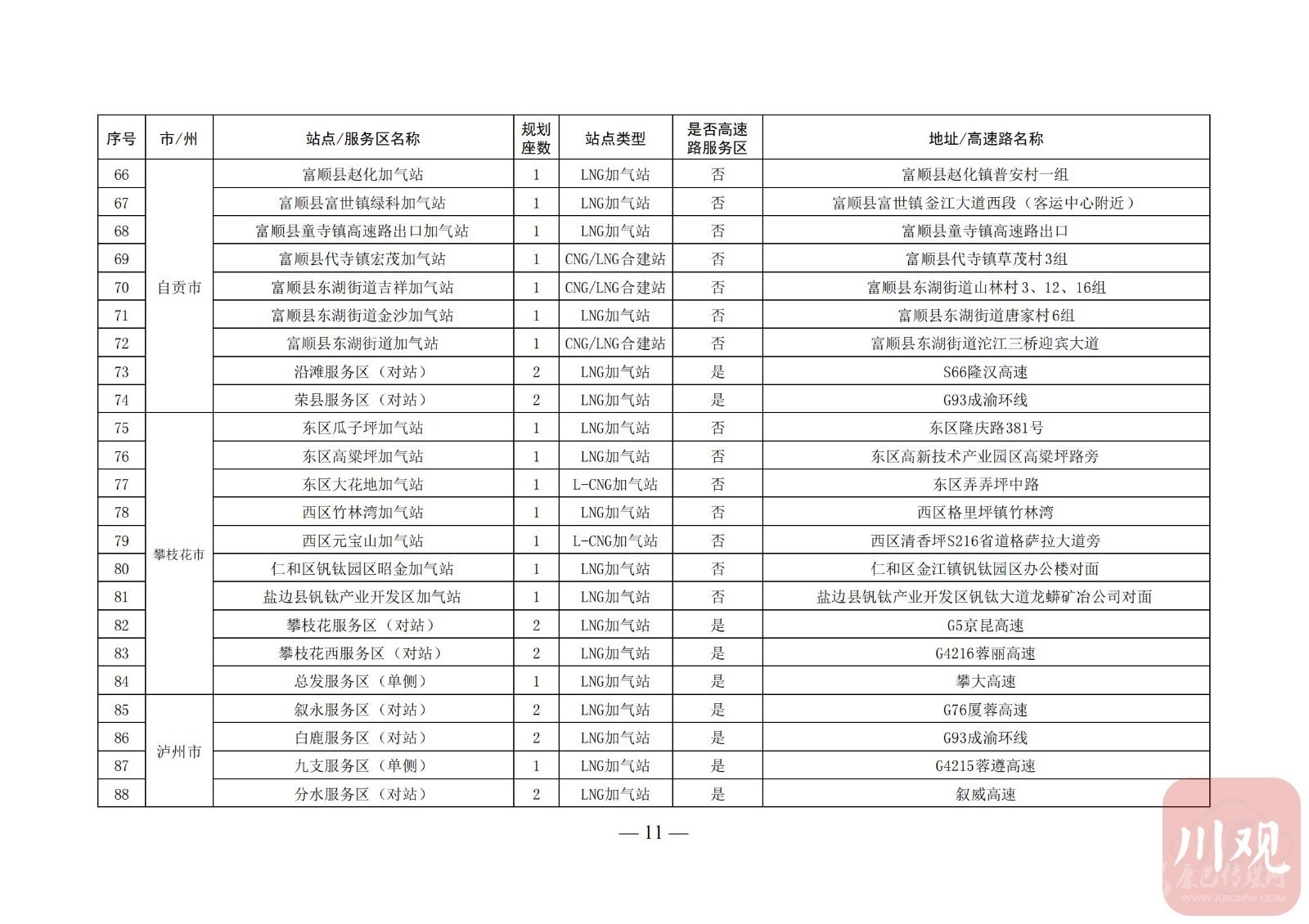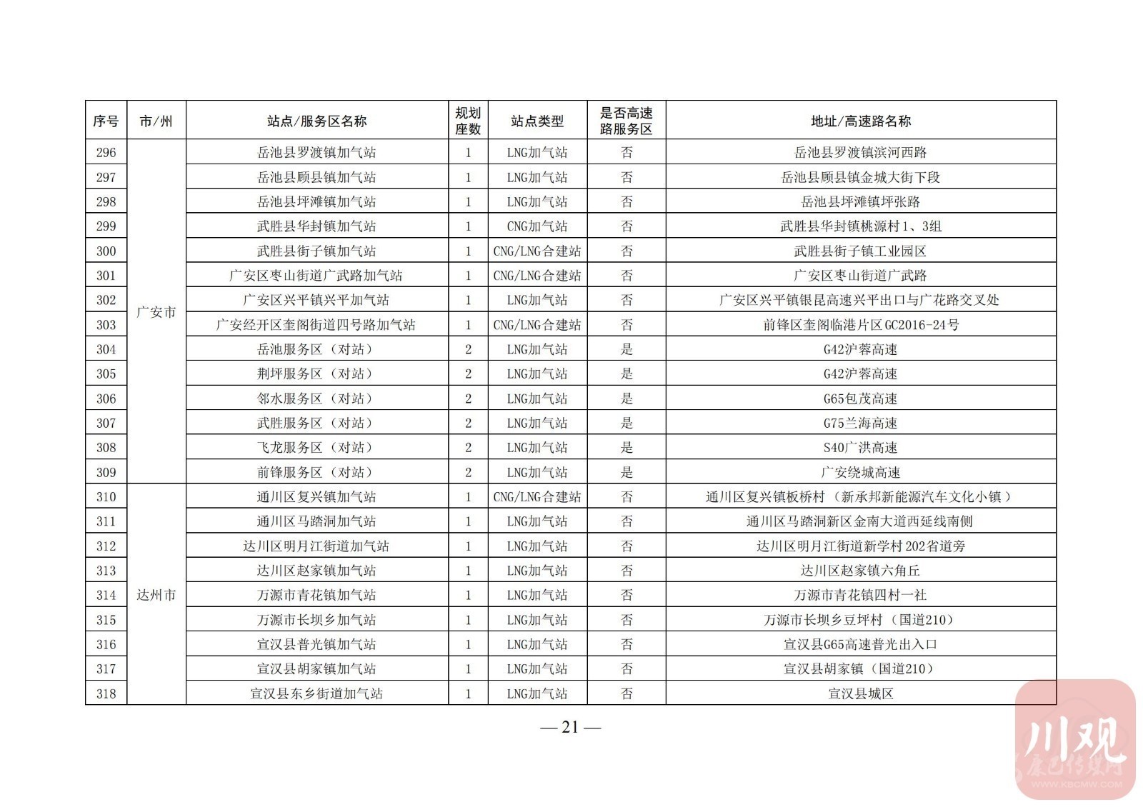 附:四川省天然氣汽車加氣站布局表