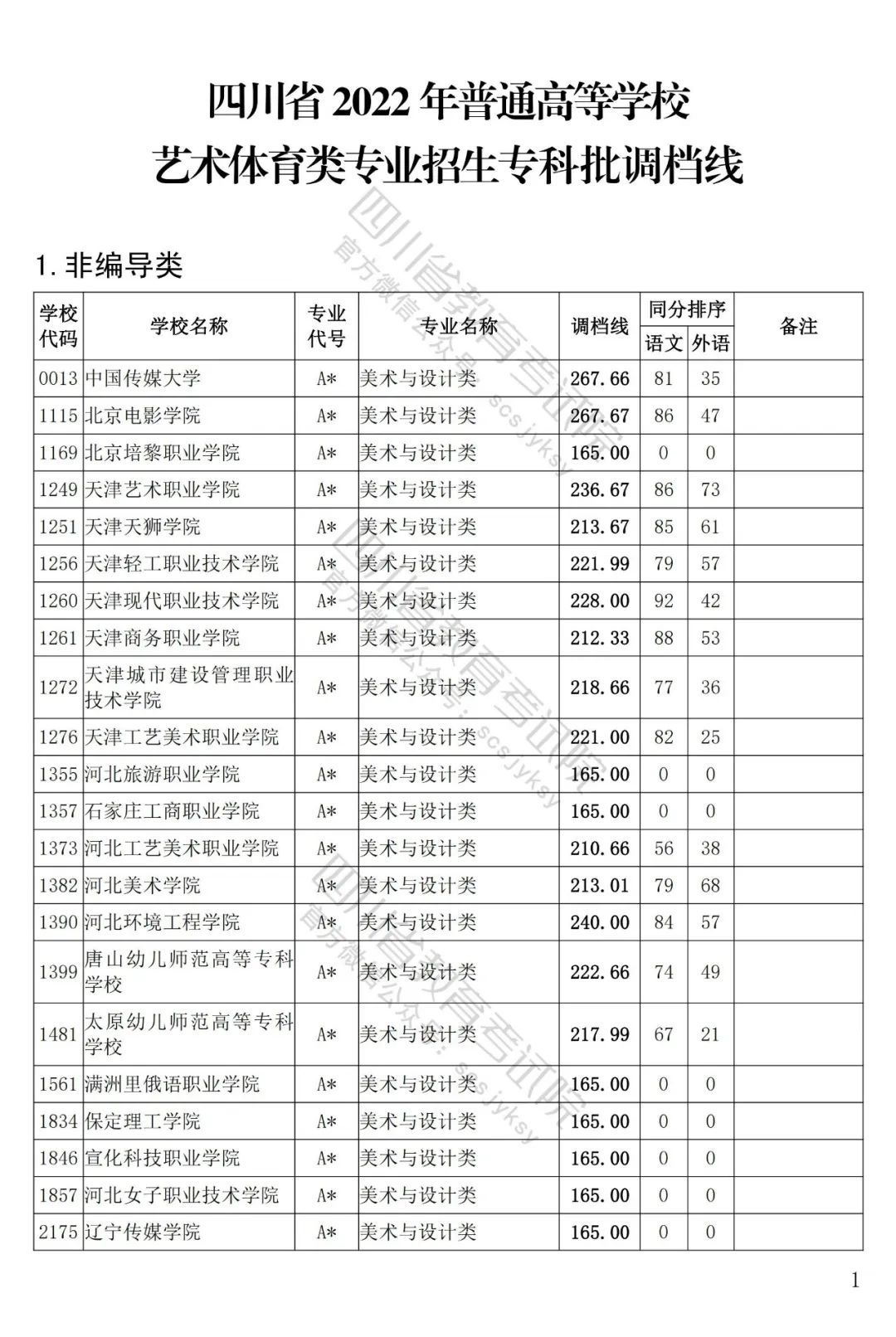 四川省2022年普通高等學(xué)校藝術(shù)體育類??婆延?月5日投檔錄取。為方便廣大考生和家長及時了解錄取信息,省教育考試院按非編導(dǎo)類和編導(dǎo)類發(fā)布了藝體類分校、分專業(yè)類調(diào)檔線。