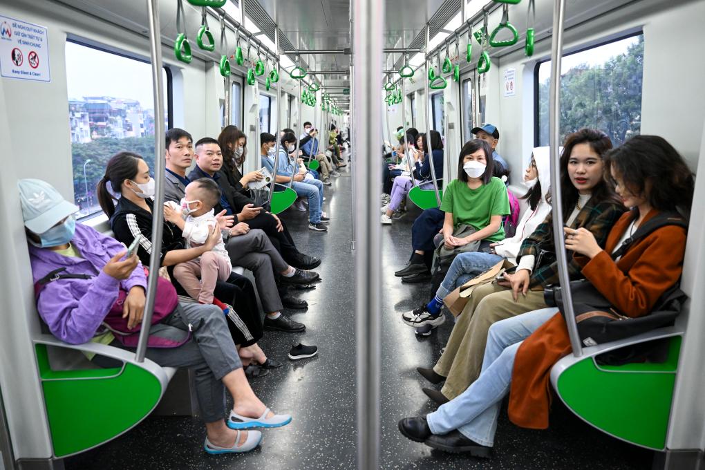 12月9日,人們在越南河內(nèi)乘坐吉靈-河?xùn)|線輕軌。河內(nèi)吉靈-河?xùn)|線輕軌由中國中鐵六局集團有限公司承建,是中越兩國共建“一帶一路”的標志性項目。新華社記者程一恒攝