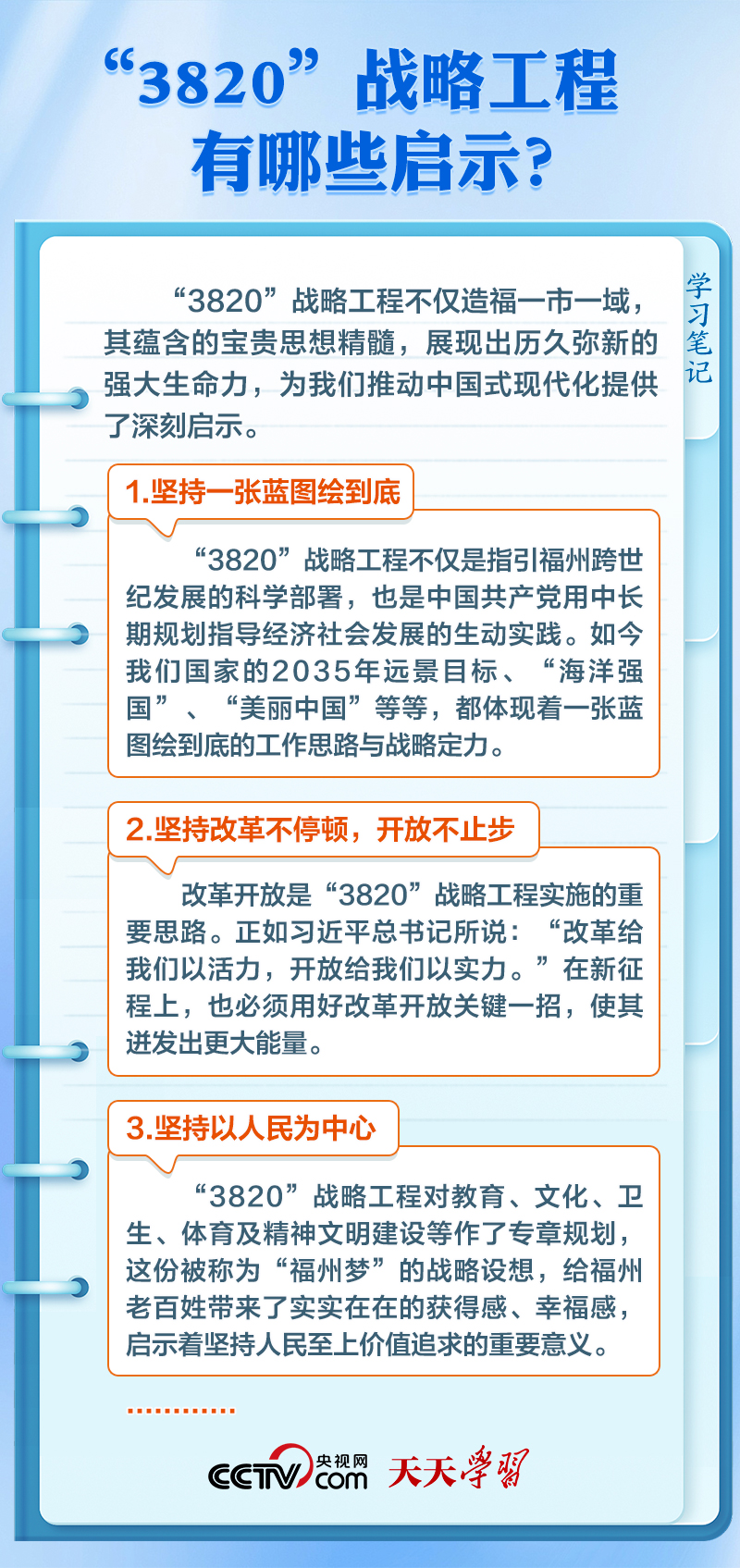 天天學(xué)習(xí)上世紀90年代,習(xí)近平在福州工作期間,親自主持編制了《福州市20年經(jīng)濟社會發(fā)展戰(zhàn)略設(shè)想》(簡稱“3820”戰(zhàn)略工程),系統(tǒng)謀劃了福州3年、8年、20年經(jīng)濟社會發(fā)展的目標(biāo)、步驟、布局、重點等,為福州擘畫了美好藍圖,確立了總綱領(lǐng)、總方略。