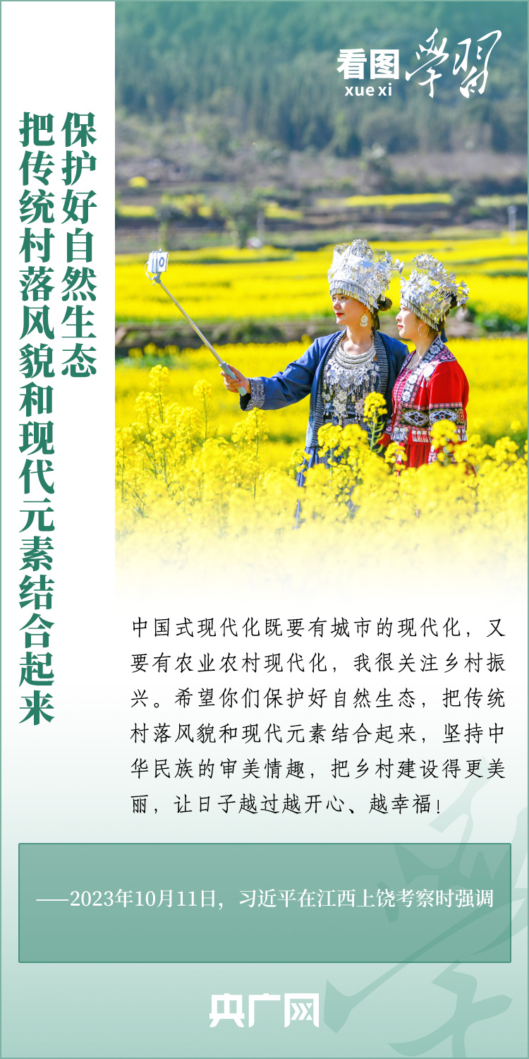 2024年中央一號文件近日發(fā)布,要求各地學習運用“千村示范、萬村整治”工程經(jīng)驗,有力有效推進鄉(xiāng)村全面振興。文件明確提出,要以確保國家糧食安全、確保不發(fā)生規(guī)模性返貧為底線,以提升鄉(xiāng)村產(chǎn)業(yè)發(fā)展水平、提升鄉(xiāng)村建設水平、提升鄉(xiāng)村治理水平為重點,打好鄉(xiāng)村全面振興漂亮仗,繪就宜居宜業(yè)和美鄉(xiāng)村新畫卷。《看圖學習》特梳理近兩年習近平總書記關(guān)于建設宜居宜業(yè)和美鄉(xiāng)村的重要論述,一起來學習!