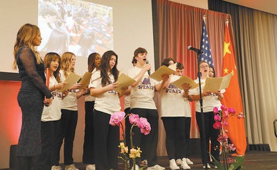 “你一定不會忘記,曾經(jīng)的小鎮(zhèn)經(jīng)歷。如今你重回故地,小鎮(zhèn)充滿了笑語。朋友期待相聚,人民渴望友誼。世界呼喚和平,地球憧憬美麗。那是情,那是緣,情緣留住永恒的記憶……”當(dāng)?shù)貢r間2月27日晚,中國駐芝加哥總領(lǐng)事館在芝加哥舉辦慶祝中美建交45周年招待會,來自艾奧瓦州馬斯卡廷中學(xué)的學(xué)生們深情演唱歌曲《情緣留住永恒的記憶》。這首歌由艾奧瓦州友人薩拉·蘭蒂提議創(chuàng)作,表現(xiàn)習(xí)近平主席與馬斯卡廷老朋友的深厚情誼以及美中兩國人民的友誼。