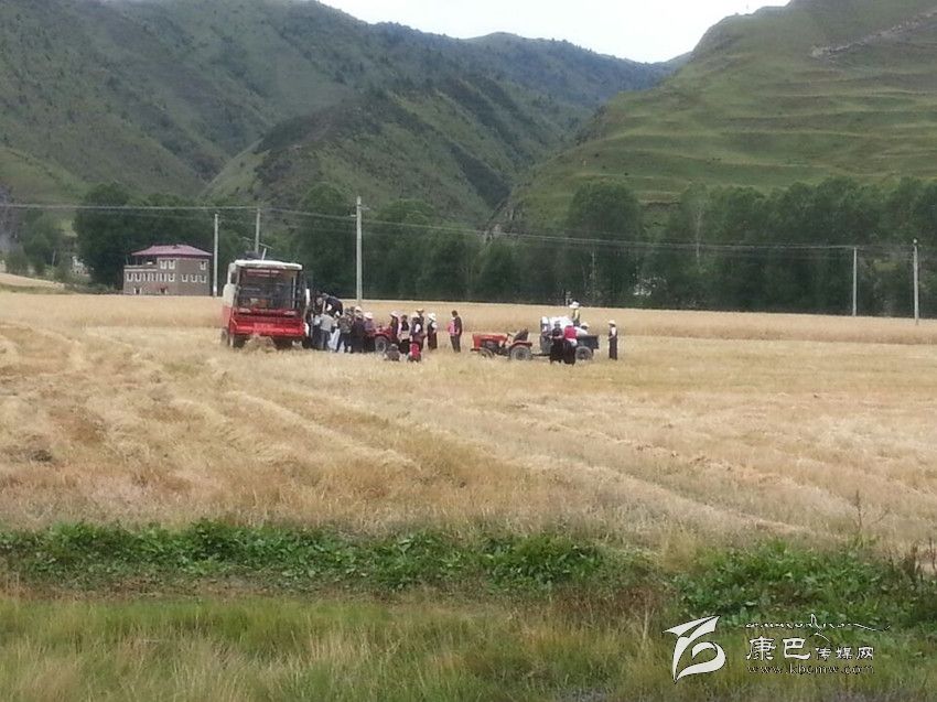 本網(wǎng)訊(孫學(xué)花 文/圖)近日,當(dāng)筆者來到康定縣新都橋時(shí),一片片金黃的麥田展現(xiàn)在眼前,收割機(jī)不停的工作場面,拖拉機(jī)忙碌的來回在天地合牧民家中,豐收的喜悅嵌在牧民的臉上。“現(xiàn)在正是收割的季節(jié),我們根本不用人工,全是機(jī)器設(shè)備,割糧食用的是收割機(jī)是政府給了補(bǔ)貼的,運(yùn)輸不用人工,都是用拖拉機(jī)拉,我們只需要上個(gè)車就完了,麥子曬干了直接用脫粒機(jī),磨面直接用電磨,可以說完全是農(nóng)機(jī)一體化運(yùn)作,我們老百姓是越來越輕松了,糧食產(chǎn)量比以前大幅度提高,因?yàn)槲覀儸F(xiàn)在用科學(xué)種田,用復(fù)合肥、地膜等科學(xué)技術(shù),日子越來越幸福。”瓦澤鄉(xiāng)瓦澤村村民降初高興地分享著他家豐收的喜悅。