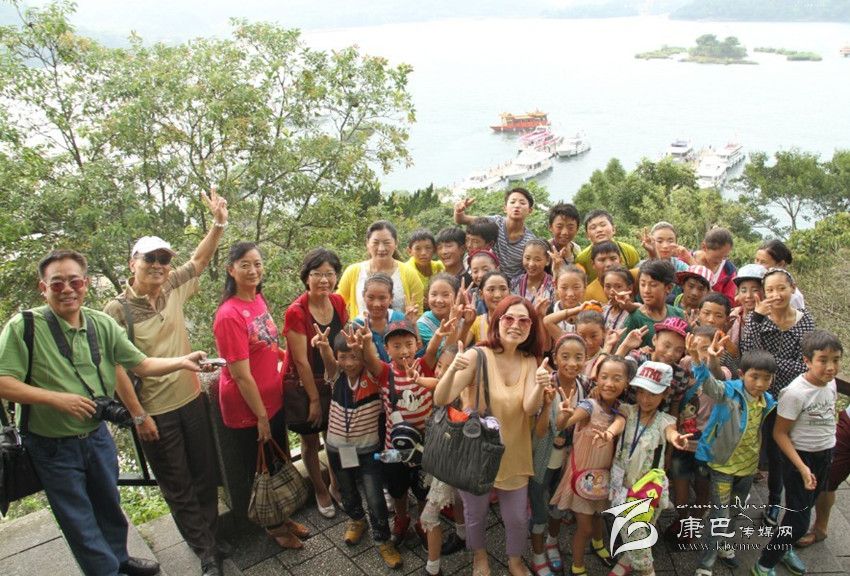 合唱團(tuán)小朋友在日月潭合影。
