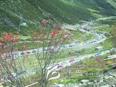 折多山上,國(guó)道318線成了汽車“展示場(chǎng)。” 張璟 攝