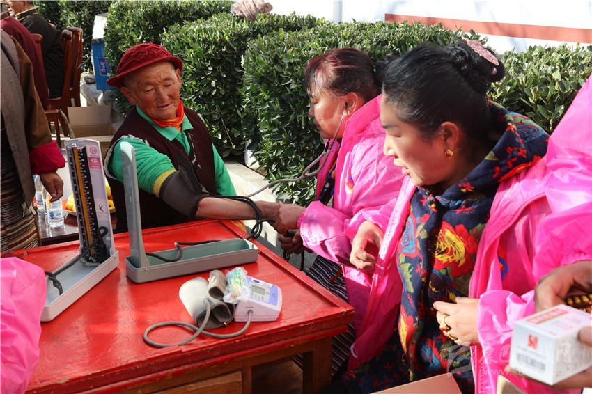 “我們送來的衣服和鞋子都是為老人們量身定制的,愿老人們健康快樂。”志愿者志瑪說。圖為志愿服務(wù)現(xiàn)場。