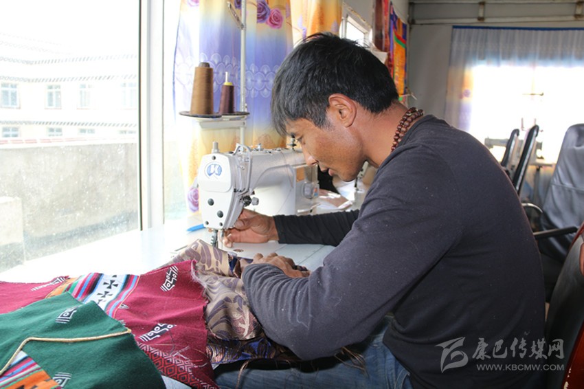 在白玉縣阿察鎮(zhèn)街上,有一處很不起眼的服裝加工店,店里擺放著各色質(zhì)地考究的服裝面料和時尚的藏族服裝。白玉縣祥陽措青年悅民族服飾商貿(mào)有限責(zé)任公司經(jīng)理在熱是納塔鄉(xiāng)納塔村的牧民,他穿著自己生產(chǎn)的藏裝,在工作室里,看到牧民或操作縫紉機、或用手工精心制作藏裝,他露出了開心的笑容。他一再叮囑員工,一定要仔細(xì),要拿出最好的本事,用一流的技藝,不僅要讓顧客滿意,還要打出公司的服裝品牌,質(zhì)量是公司和員工的立身之本。