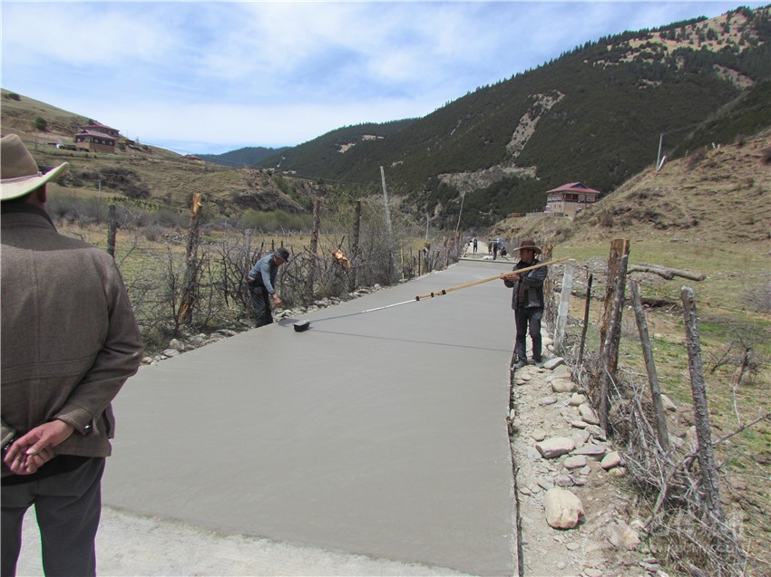 在帕美村修建現(xiàn)場,正好遇到了村支部書記扎呷和一位村民正在檢查路面修建尺寸是否符合建設標準,“今天輪到我們監(jiān)督橋梁建設質量,這樣的監(jiān)督方式讓我們對橋的質量更加信賴。”